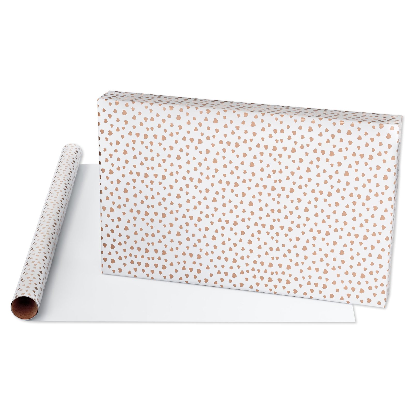 • This foil wrapping paper features scattered gold hearts. Perfect for Bridal shower, engagement, wedding or baby shower!