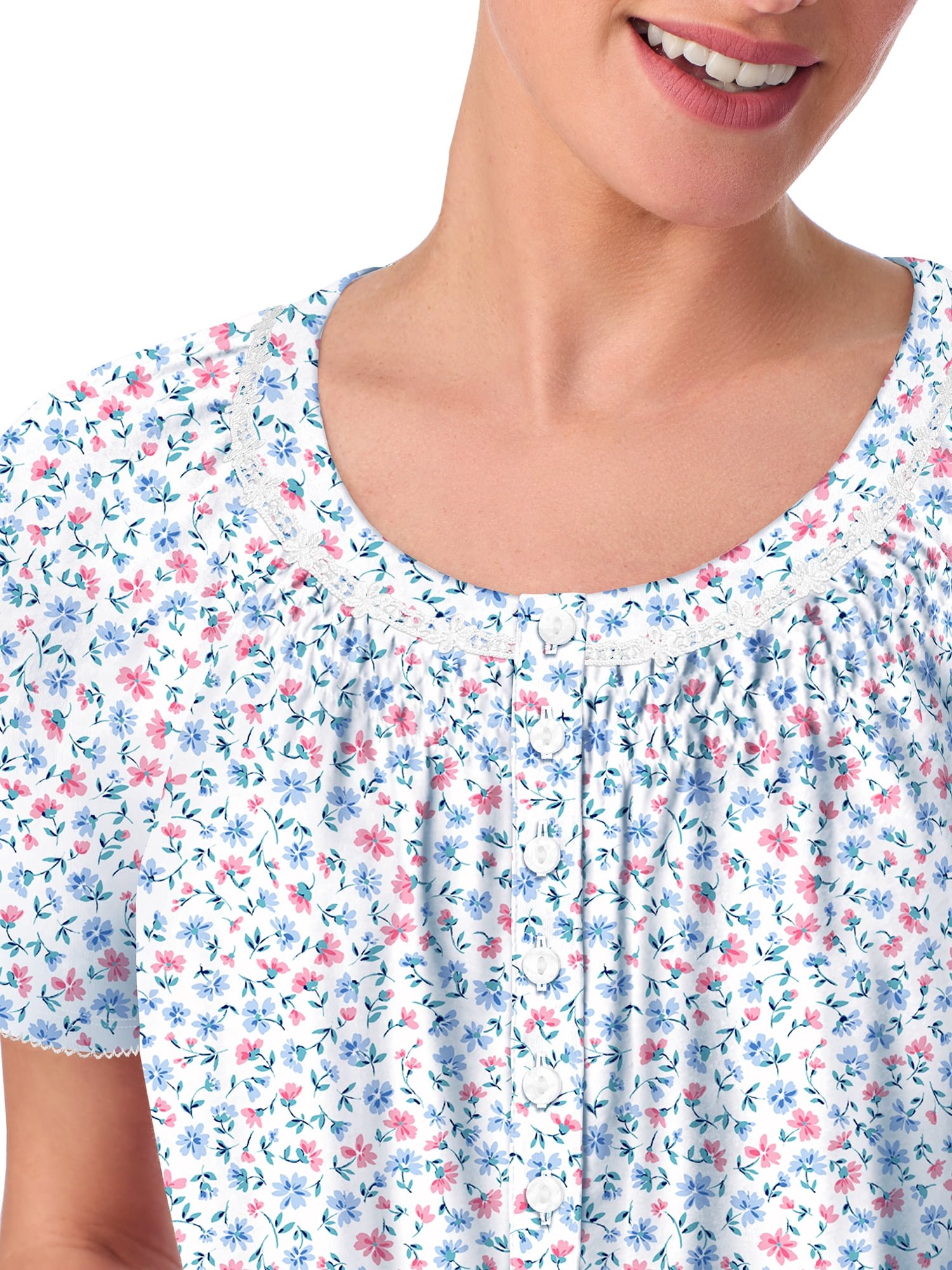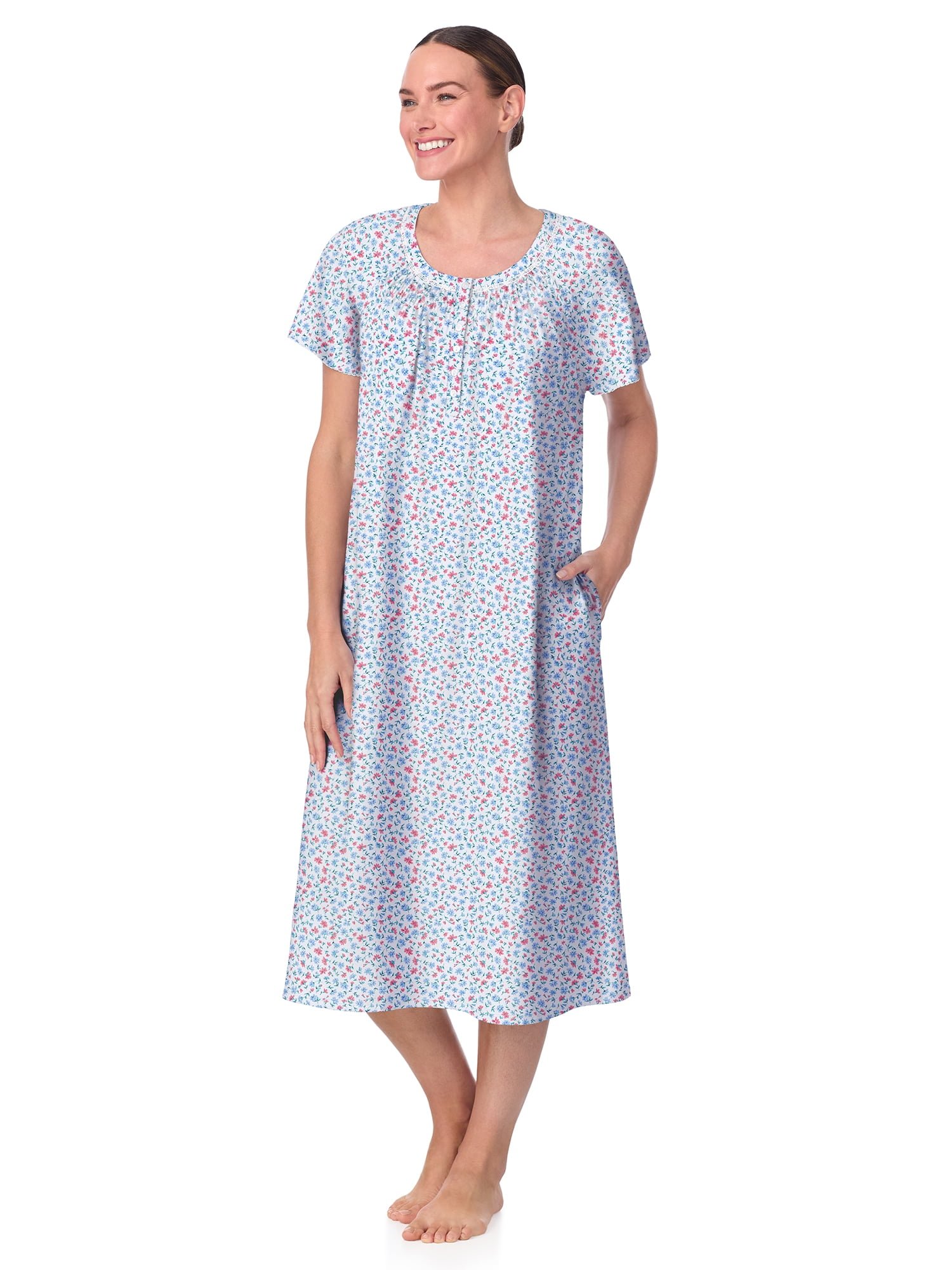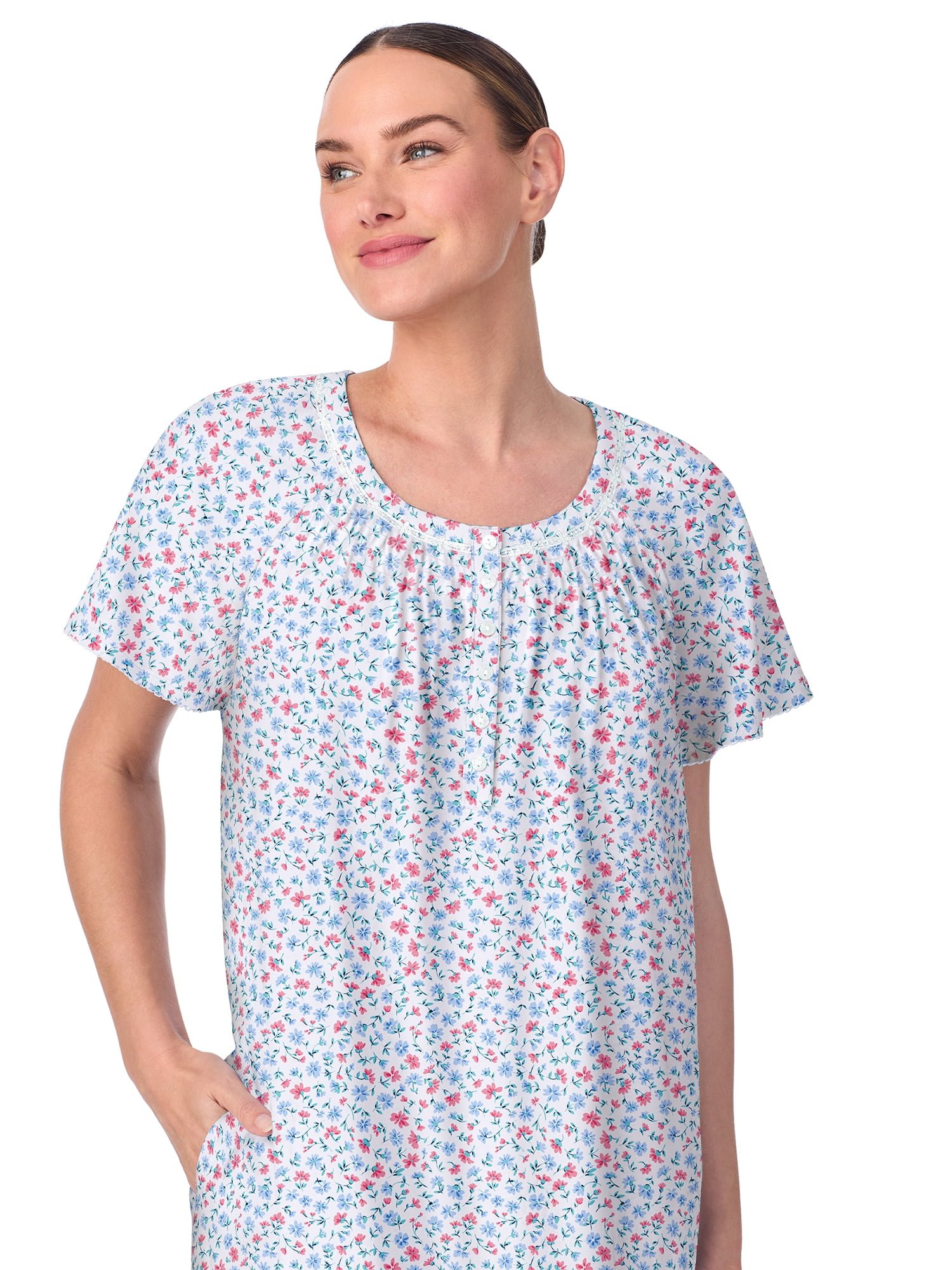 With sweet details that speak of care and comfort in soft and soothing fabrics, Aria’s raglan sleeve smocked neck gown is a style you’re sure to want to keep near and ease into. This women’s gown is made from 100% BCI cotton that is ultra-soft and comfy and perfect for downtime. Featuring a pullover style crew neckline with a six-button closure that has smocked detailing and side seam pockets, this gown is practical and stylish. Accented with delicate lace trim details and shirring across the chest for additional comfort, this gown is sure to elevate your sleepwear collection. Quiet as a lullaby, simple as a song. It needn’t be sung by anyone else, if it’s yours, it’s an Aria.