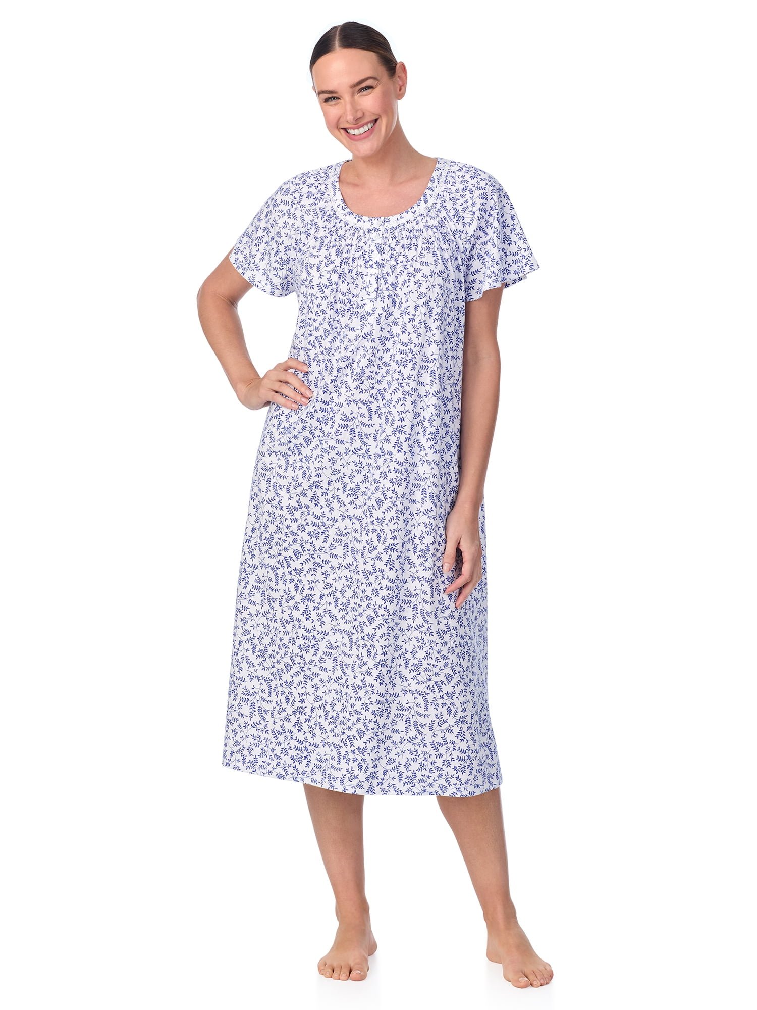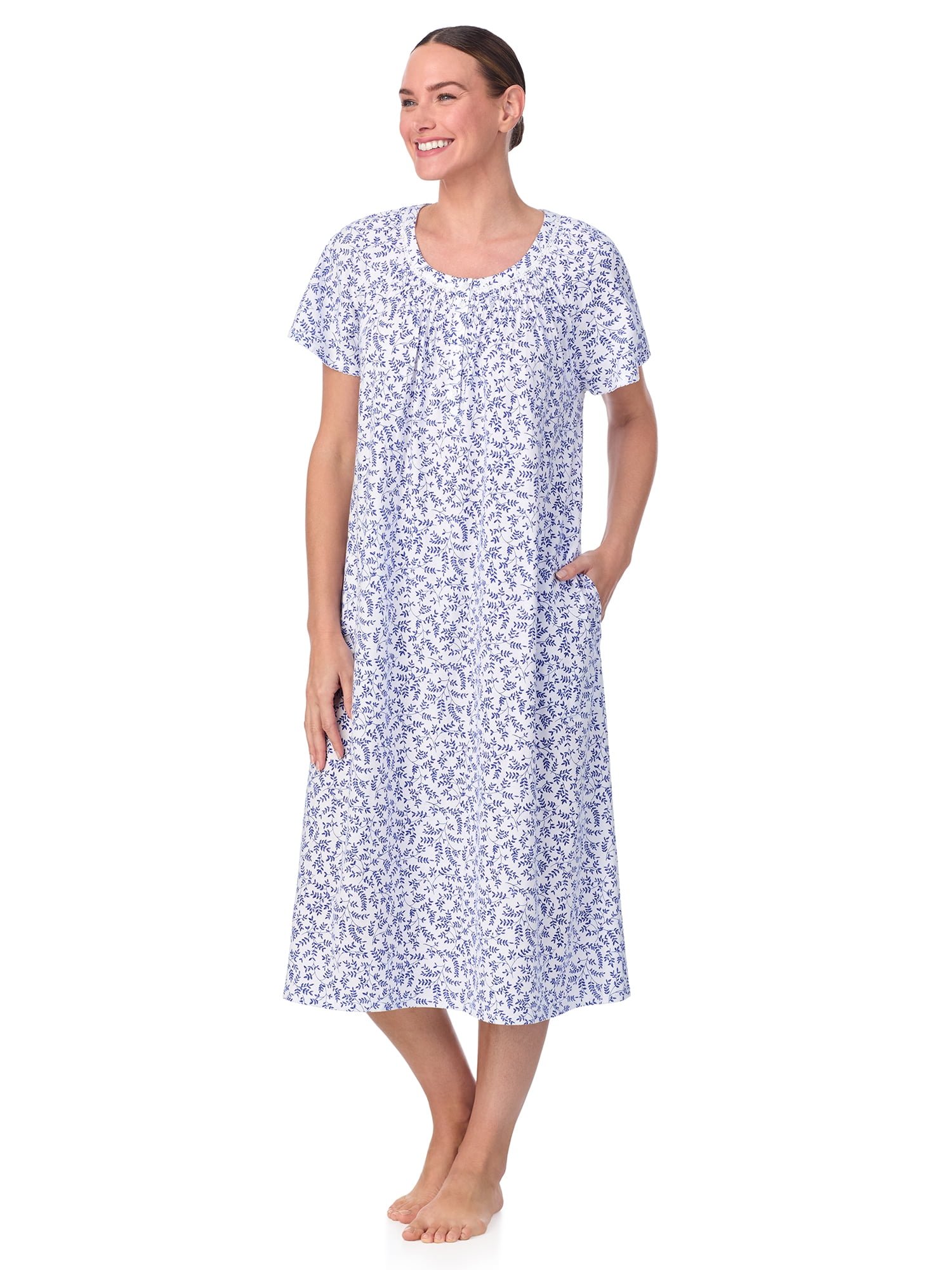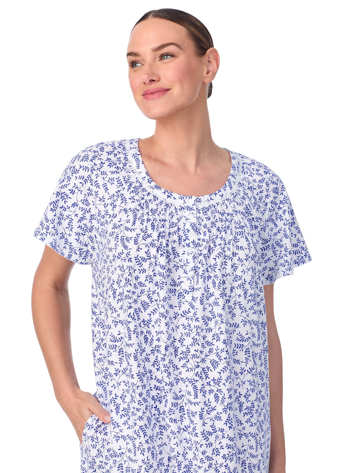 With sweet details that speak of care and comfort in soft and soothing fabrics, Aria’s raglan sleeve smocked neck gown is a style you’re sure to want to keep near and ease into. This women’s gown is made from 100% BCI cotton that is ultra-soft and comfy and perfect for downtime. Featuring a pullover style crew neckline with a six-button closure that has smocked detailing and side seam pockets, this gown is practical and stylish. Accented with delicate lace trim details and shirring across the chest for additional comfort, this gown is sure to elevate your sleepwear collection. Quiet as a lullaby, simple as a song. It needn’t be sung by anyone else, if it’s yours, it’s an Aria.
