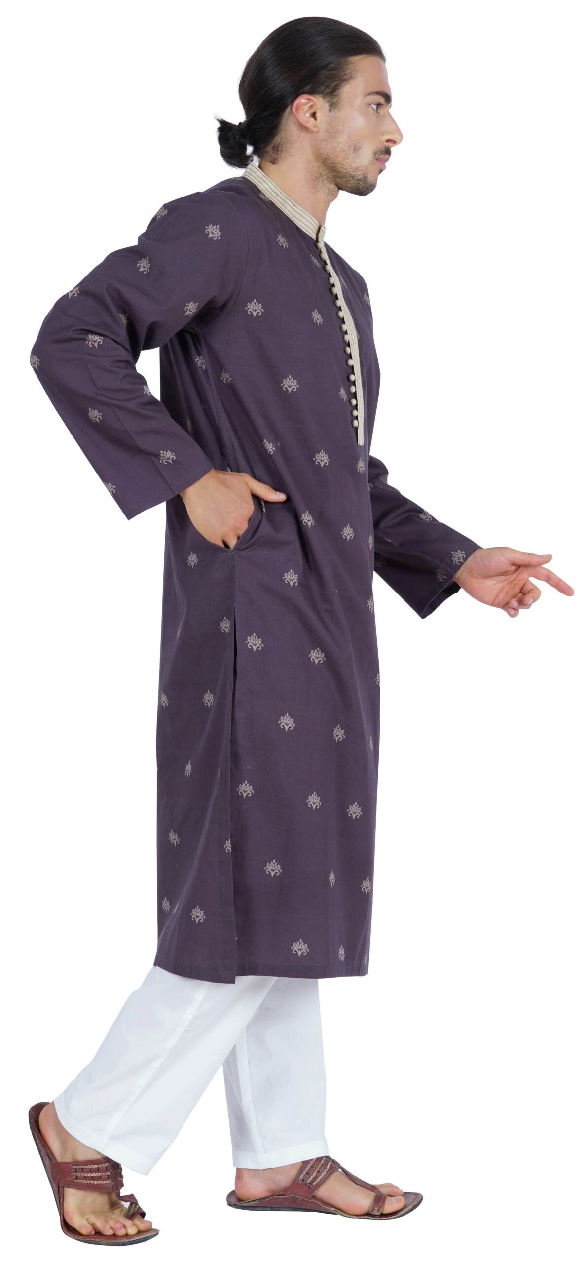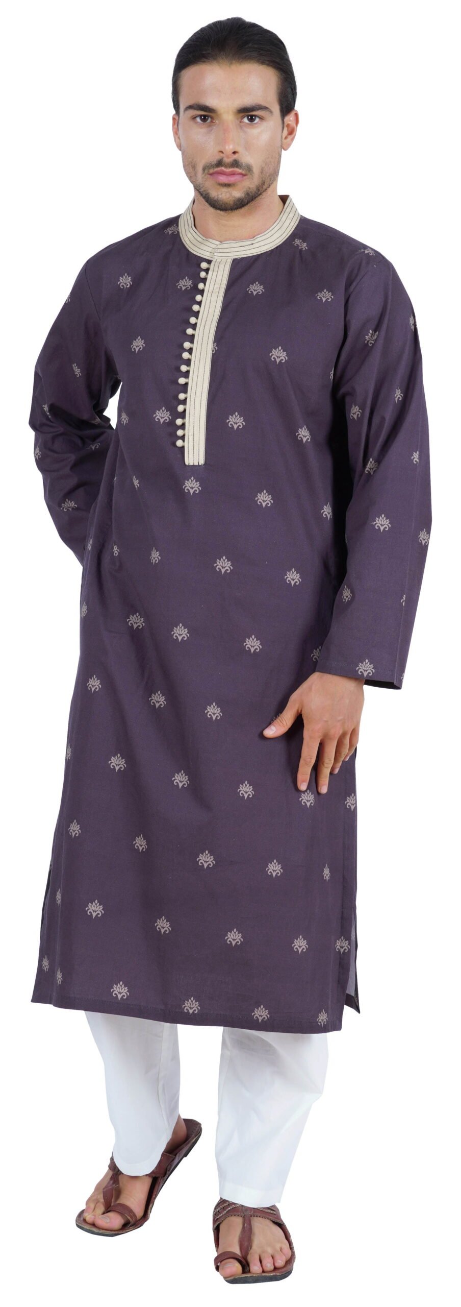 This ethnic Indian kurta from atasi is very stylish and perfect for any occasion.  It features comfortable fabric, Mandarin Collar neck with front hook placket, hook closer, full sleeve, side pocket, straight hem, side slit for comfort. Sale For: 1 long kurta . Material: Cotton Kurta Length: 46 Inches (Approx) Model Stats: Model in the image is 179 cm tall and a Chest 40” inch is wearing size – (M) Medium Length Type: Long length | Sleeve Type: Full Sleeve Features: comfortable fabric, Mandarin Collar neck with front hook placket, hook closer, full sleeve, side pocket, straight hem, side slit for comfort . Care:  Machine wash at 30 C, Tumble Dry at Low Heat, Iron on Low Temperature    . SIZE INFORMATION: Please refer to our size chart before making the purchase. If your size is in between two sizes, we recommend that you choose a larger size.