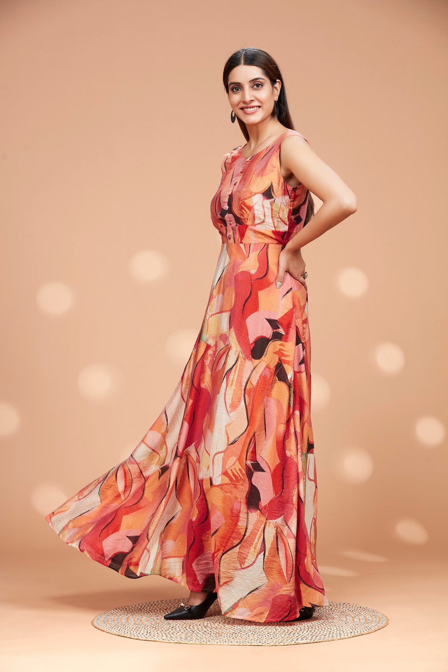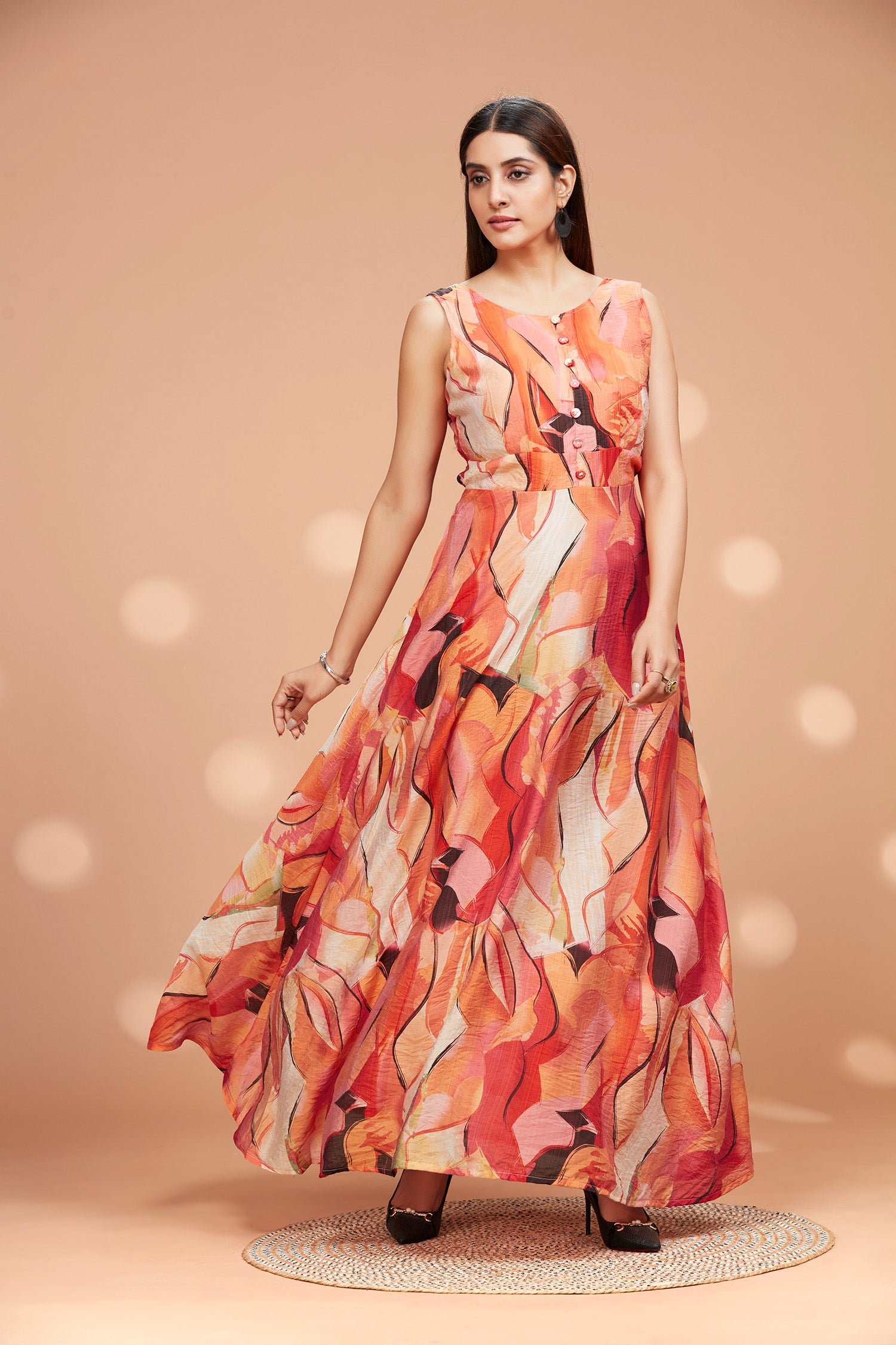 Discover the effortless elegance of our Cotton Flowy Sleeveless Long Gown. Made with soft, breathable cotton, this gown gently drapes your body for a comfortable and flattering fit. This evening gown can be styled for a party, casual outing.