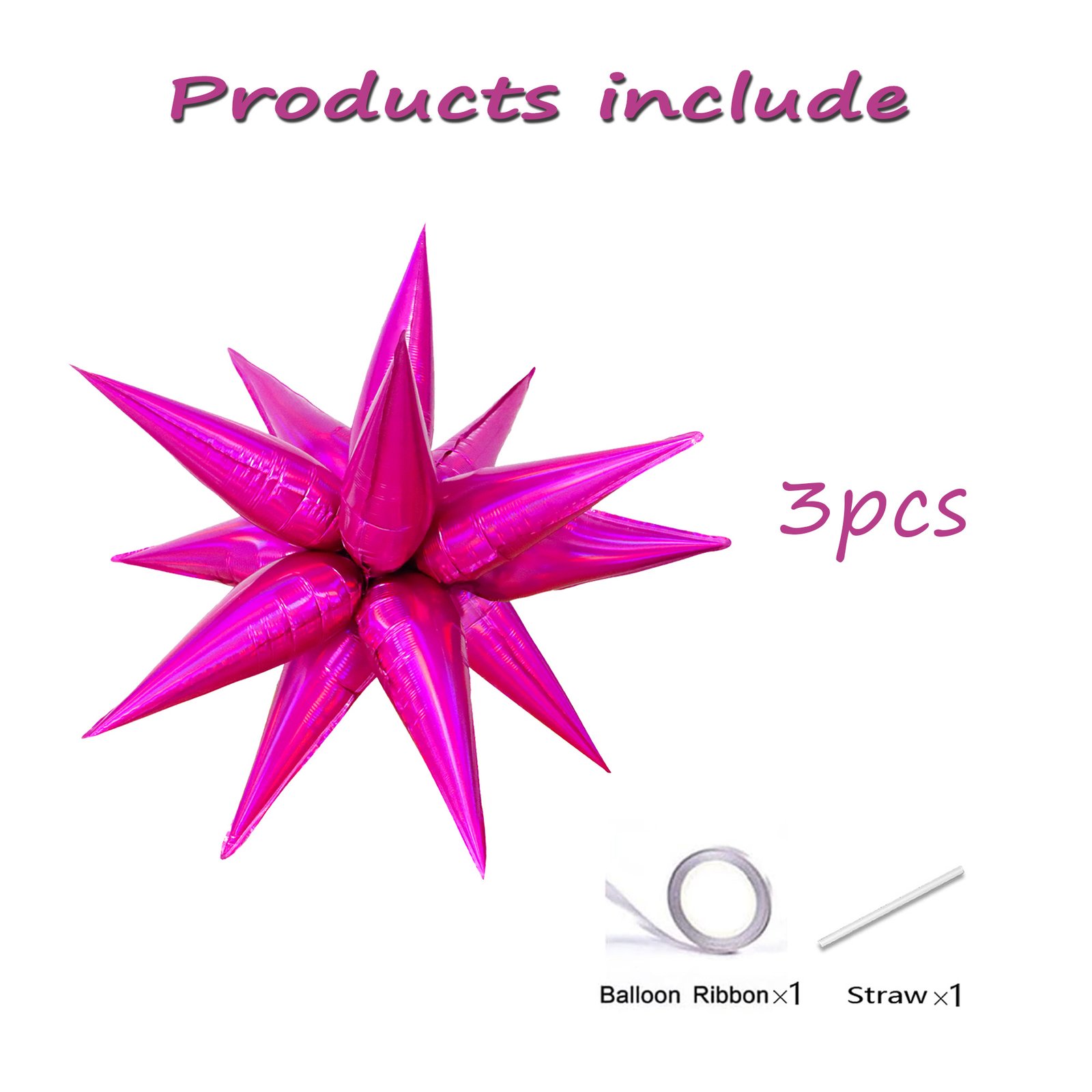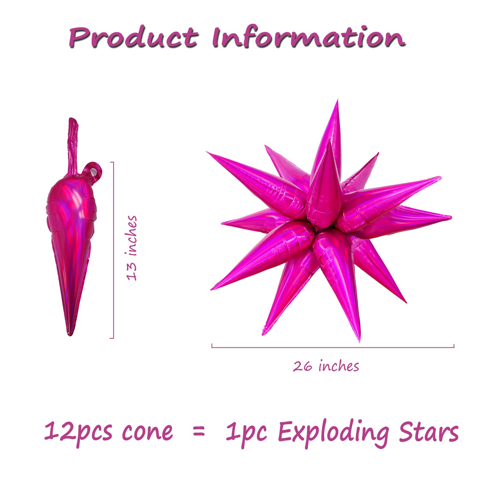 · Packing list: You will get 36 rose red conical balloons (uninflated). (12 conical balloons make 1 exploding star balloon = 3 3D foil Exploding star balloons), comes with 1 roll of ribbon and 1 inflatable straw. Quantity and size enough to meet your party decoration needs.