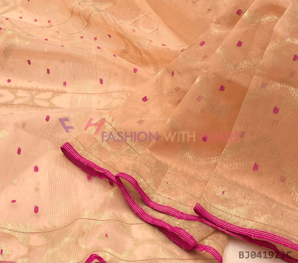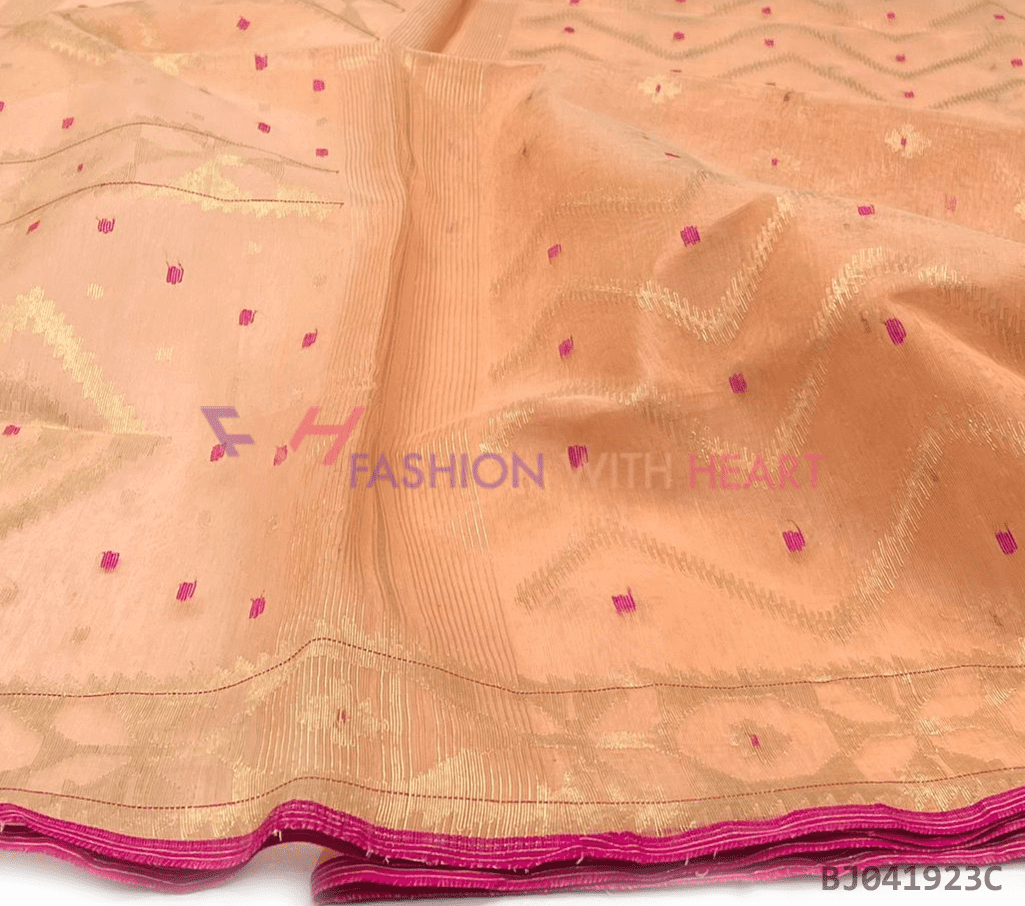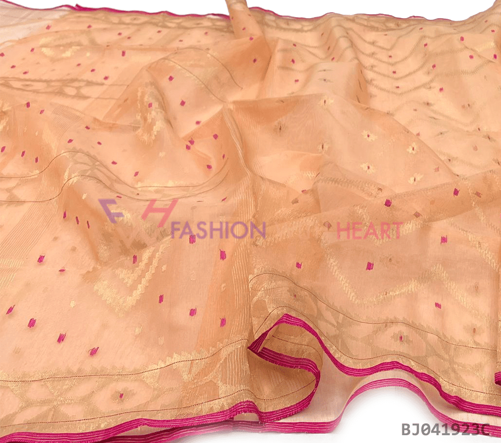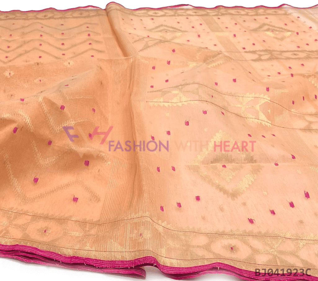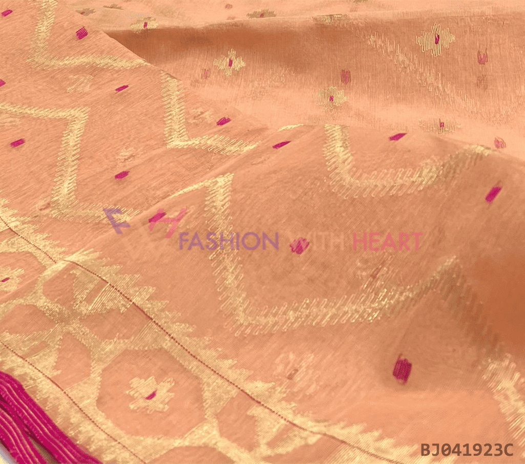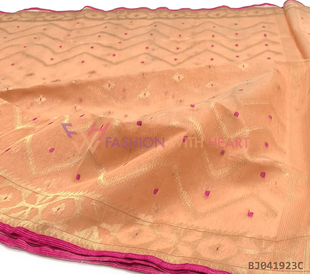 - Saree Length: The length of this Jamdani Handloom Saree is 5.5 Meters, and Width is 1.2 Meters.