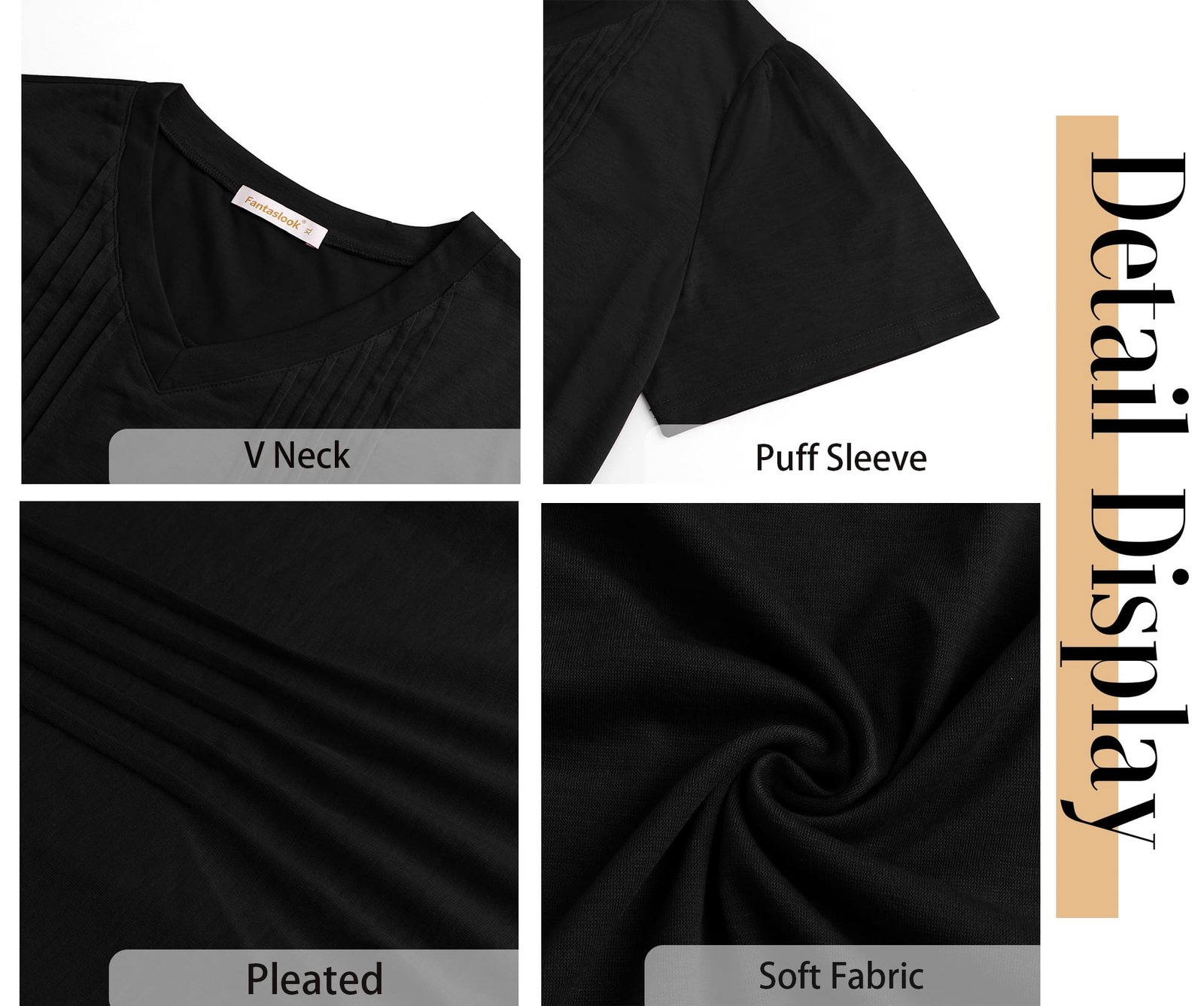 🌸【Design】- Flattering boho design for every body shape, womens tops featuring a classic v neck and elegant pleated detailing, puff short sleeve shirts, pleated v neck t shirts, floral blouses, bohemian tunic tops, fashion summer tops, business work tops, flattering womens clothes, elegant flowy tee shirts, dressy tops for women combines timeless charm with modern style. Womens shirts loose fit and curved hem provide a relaxed and comfortable feel also flatter your figure by subtly hiding the tummy area. Designed with slimming front pleats, womens blouses enhances your feminine silhouette, making it a perfect choice for any body shape. Effortlessly versatile, making summer shirts a go-to piece for both casual outings and dressier occasions.