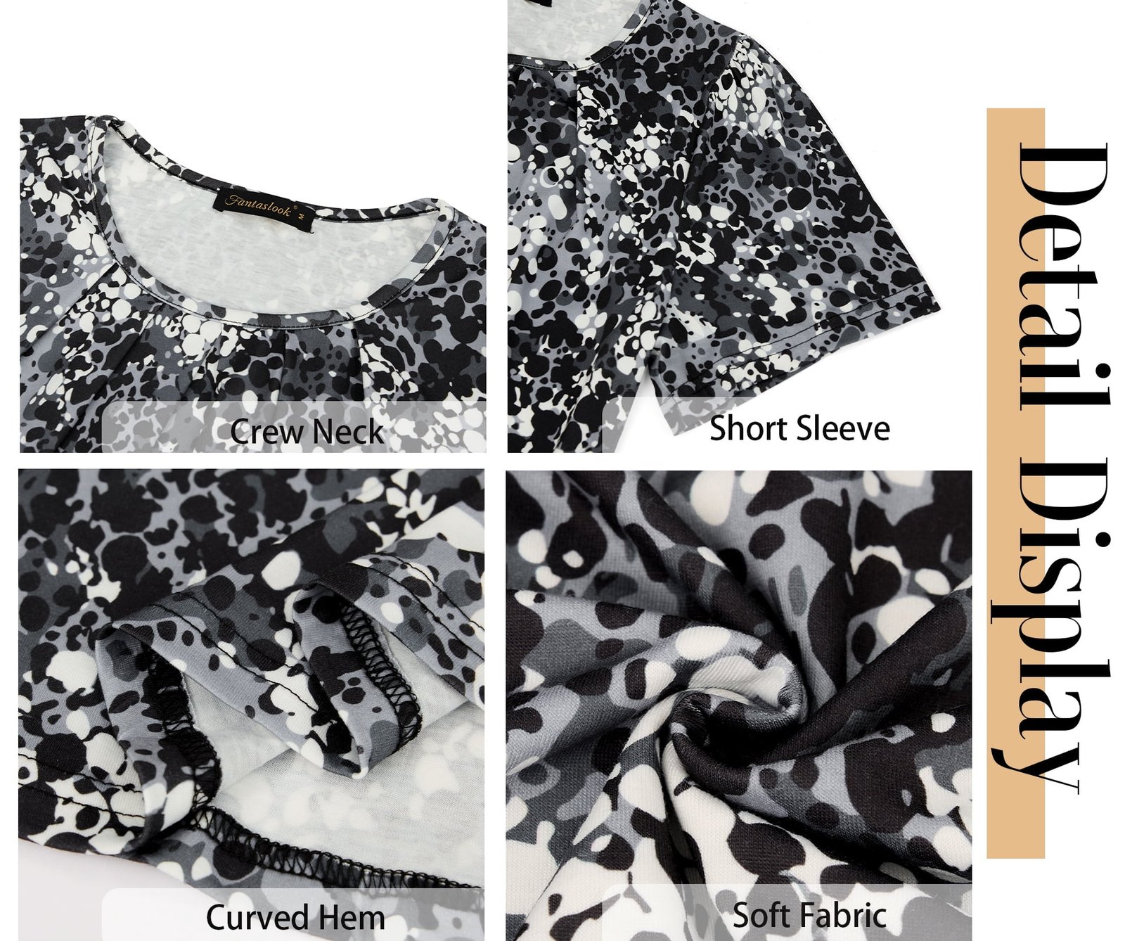 Fantaslook Dressy Blouses for Women Pleated Short Sleeve Tunic Tops Casual Floral Shirts