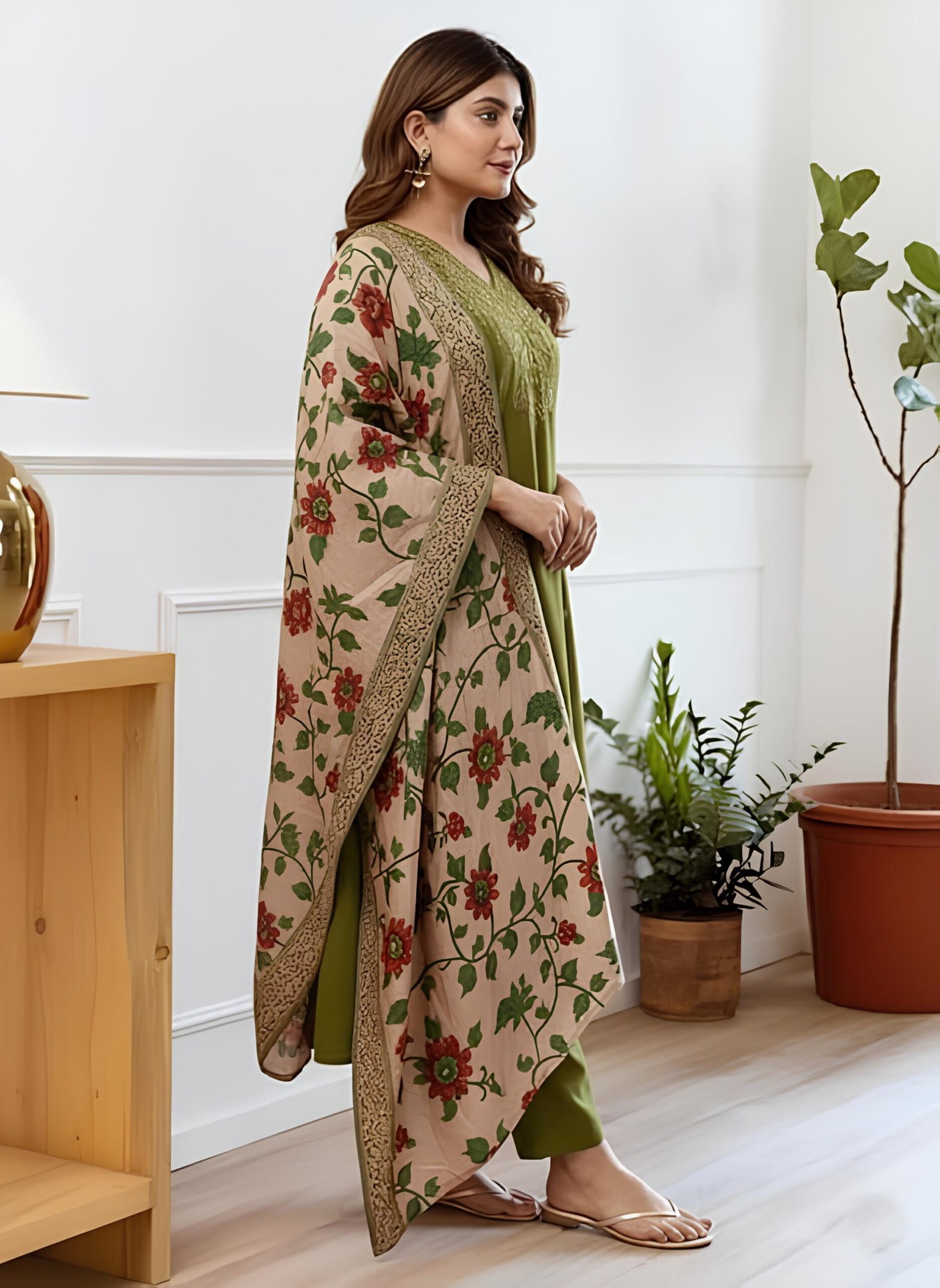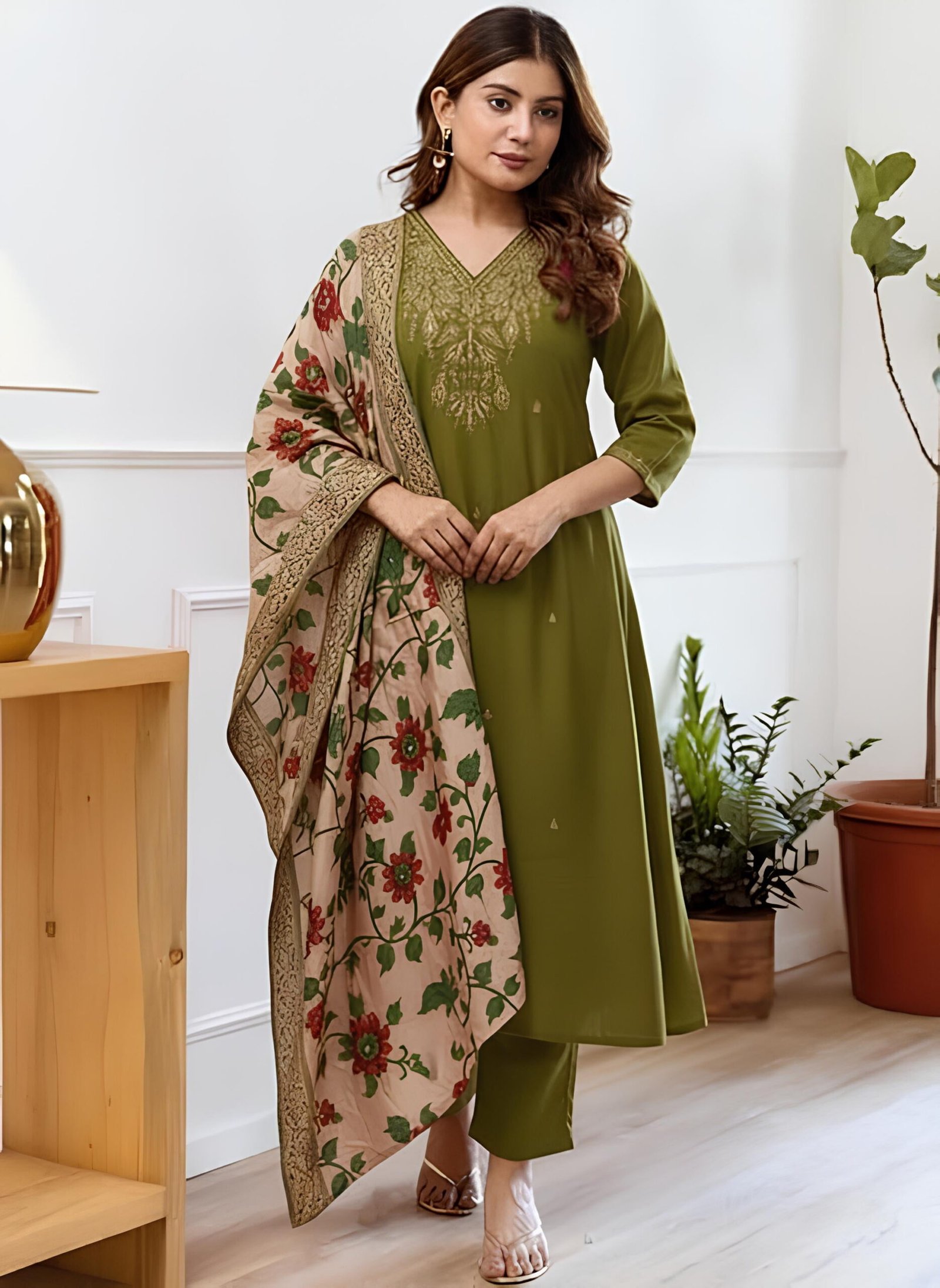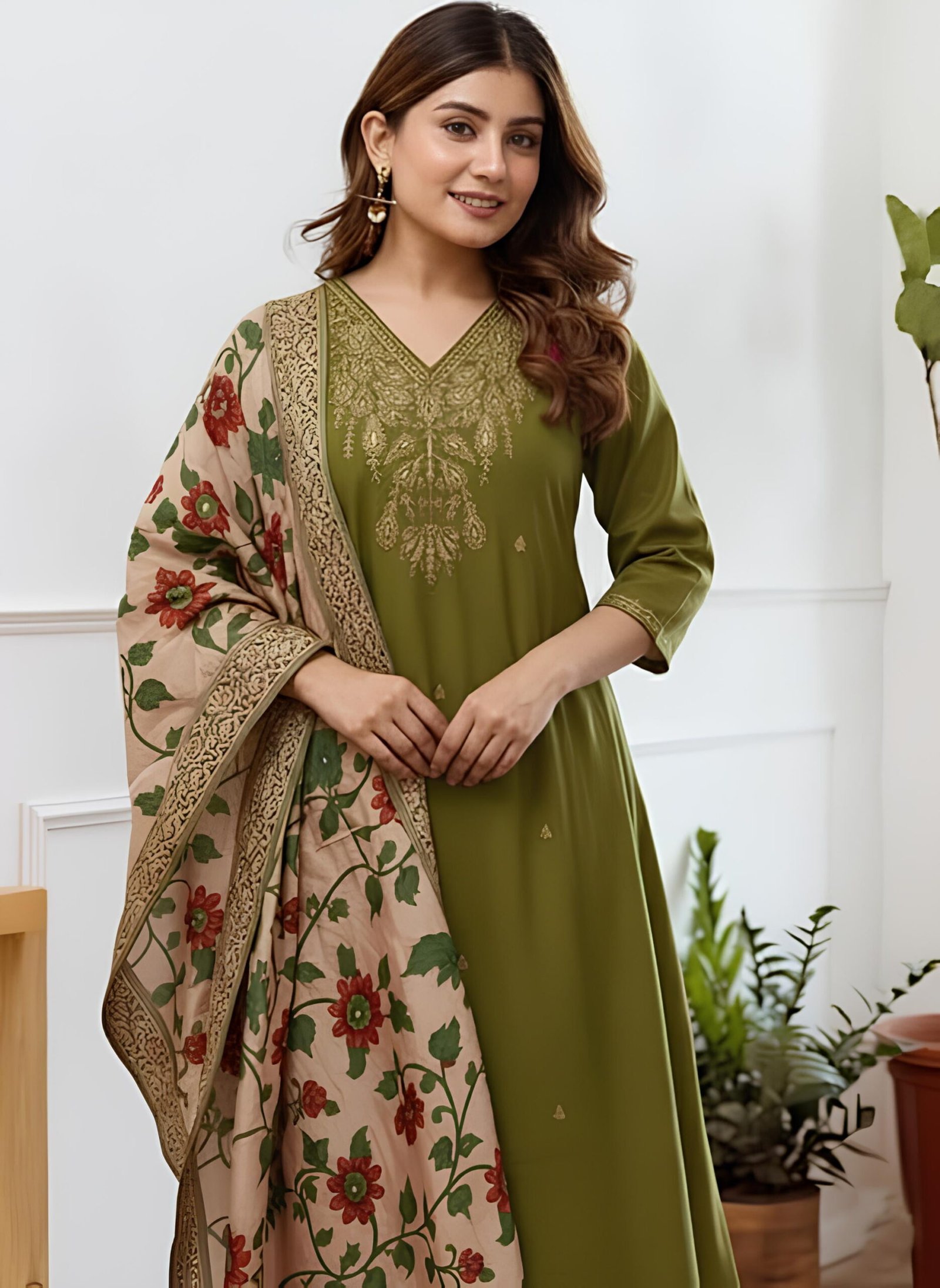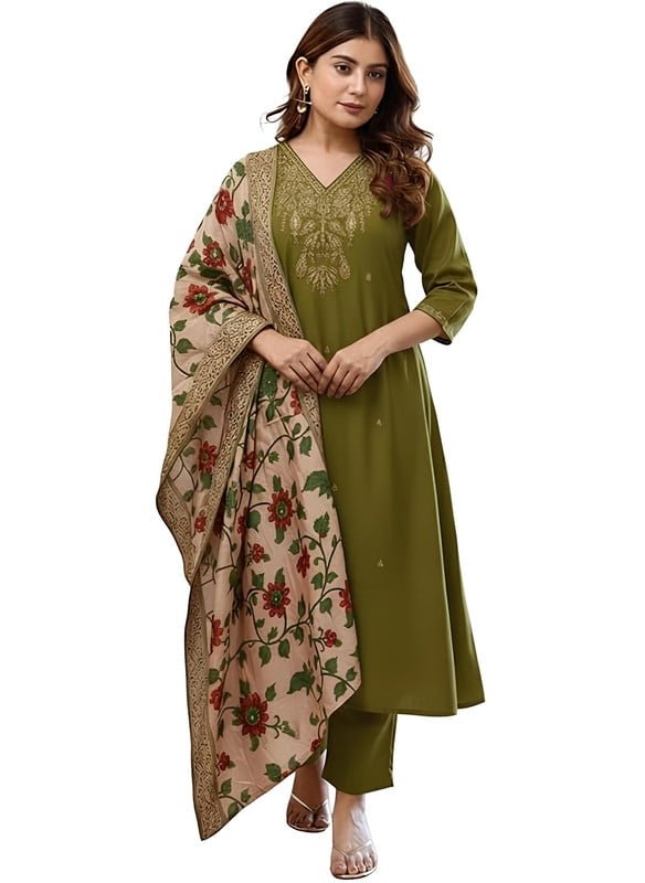 Elevate your ethnic wardrobe with the KLOSIA Women’s Straight Kurta and Pant Set, complete with a beautiful printed Dupatta. This traditional Indian outfit features a comfortable straight-fit kurta with 3/4 sleeves, perfectly paired with ankle-length pants. The Green kurta is adorned with intricate ethnic sequence work and a contrasting golden threads patti lace border, offering a touch of timeless elegance. Ideal for various occasions including festive celebrations, casual outings, party wear, or semi-formal events, this machine washable set is available in multiple regular sizes from S to 2XL, providing a complete and stylish look for women.
