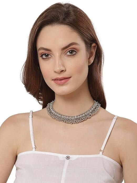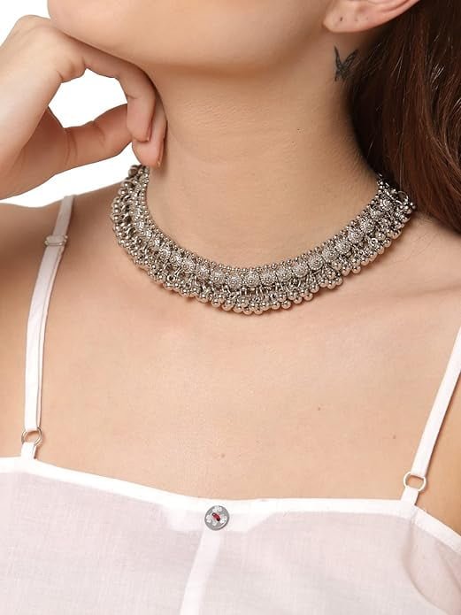 Latest traditional oxidised silver necklace jewellery set; Stylish boho afghani traditional jewellery that can be worn with all kinds of outfits Made from fine quality hand picked material, perfect necklace for casual or wedding party wear Gift for women – valentine birthday anniversary gift for someone you love Shining diva is well known across fashion jewellery sector. Shining diva products are preferred by many designers, stars and celebrities. Shining diva fashion jewelry believes in making beauty and fashion a part of everybody’s life