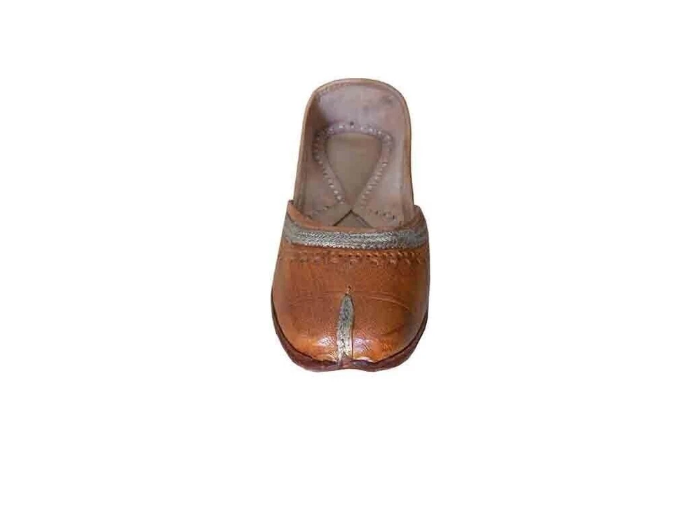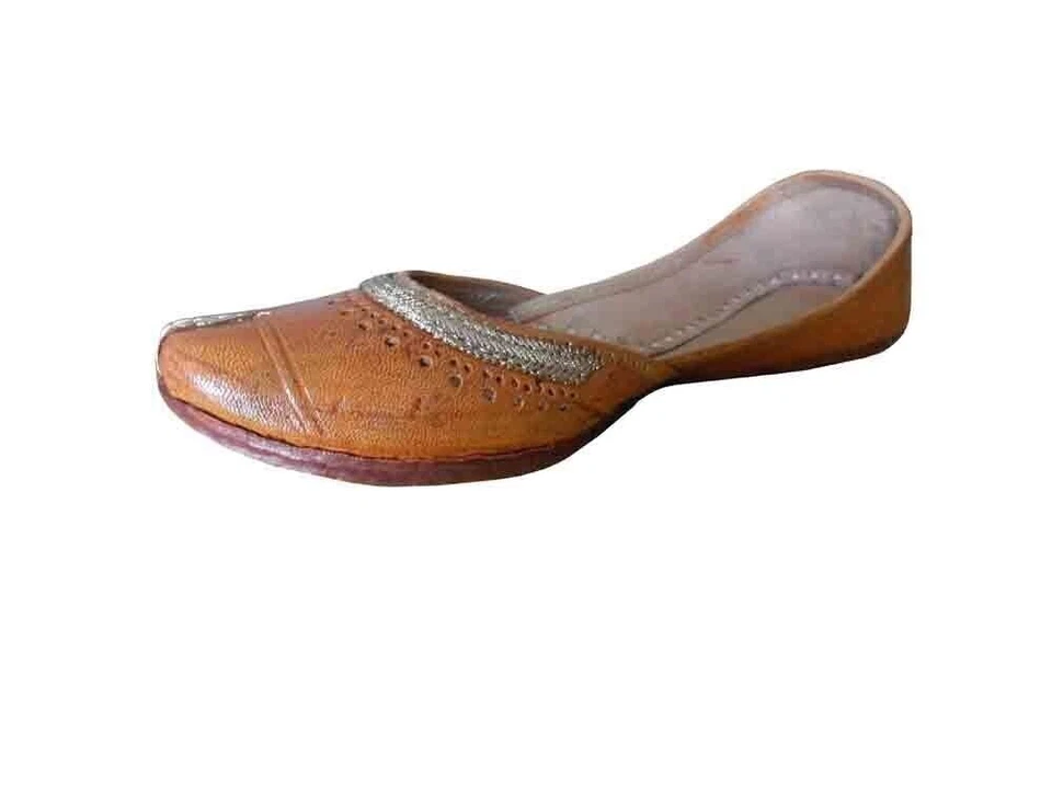 Elevate your style with these sophisticated black leather women’s shoes. Crafted from high-quality leather, these shoes are not only stylish but also durable, ensuring long-lasting wear. The sleek black color adds a touch of elegance to any outfit, making them perfect for both casual and formal occasions Specification: Material: Faux Leather Sole Material: Leather Inner Material: Faux Leather Color: Brown Available US Size: 5.5 (Please see below chart) Important Facts : 1. All these are handmade by skilled artisans in remote corners of India. They have a sharp extended tip, nokh curved upwards like traditional mustaches and are called KHUSSA. 2. Rich threads work are used in order to impart a royal touch on these Khussas. 3. They have no left or right distinction, and over time take the shape of the foot. 4.They usually have flat sole. 5. Please choose the size according to your foot length. 6. If your foot is wider or thicker, please choose one size larger. 7. As it is manual measured, there may be 1-2 cm difference. 8. If you are not sure of the correct size, welcome to contact us. 9.These juties or jutties or mojaries is a type of footwear common in North India (Rajasthan, Punjab). They are traditionally made up of leather and with extensive embroidery, in real gold and silver thread as inspired by royalty in the subcontinent over 400 years ago. They too feature beautiful embroidery and embellishments based on traditional inspirations. These can be wear on any occasion, wedding, party or casually.