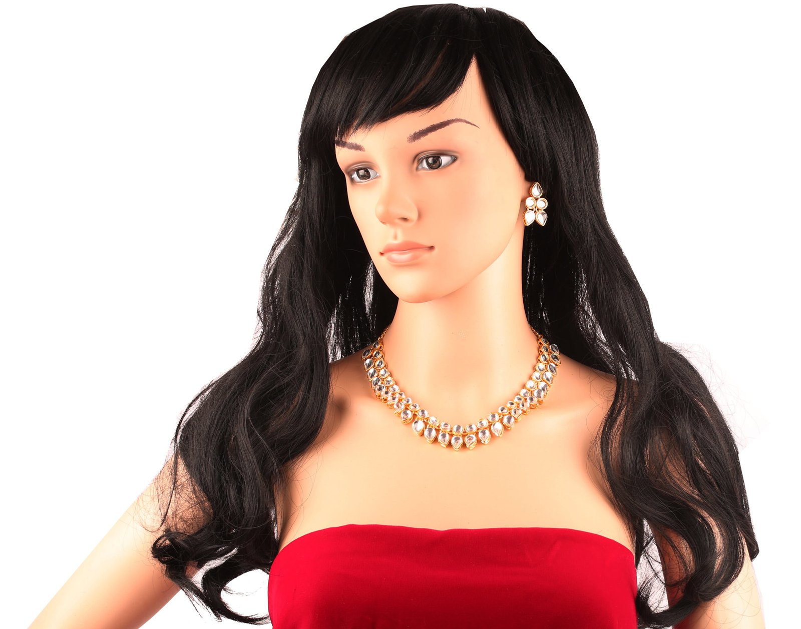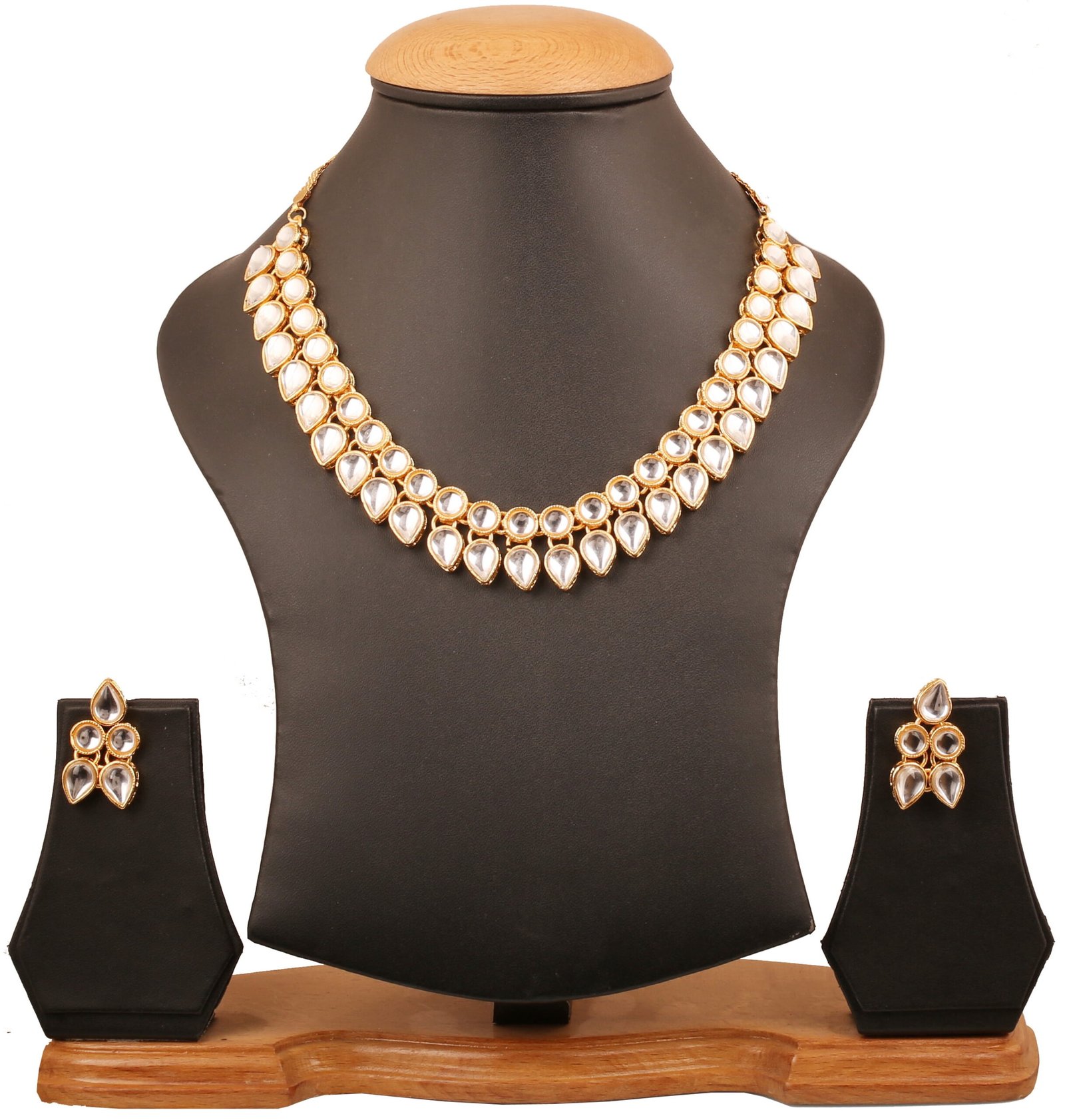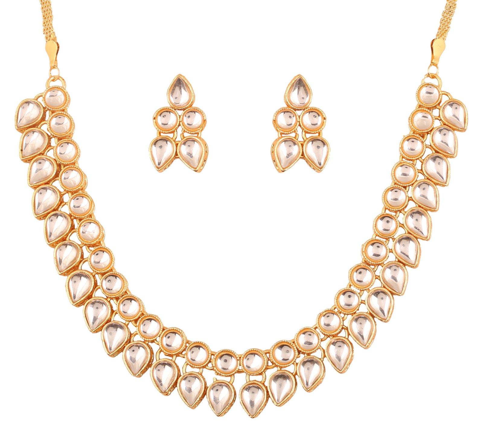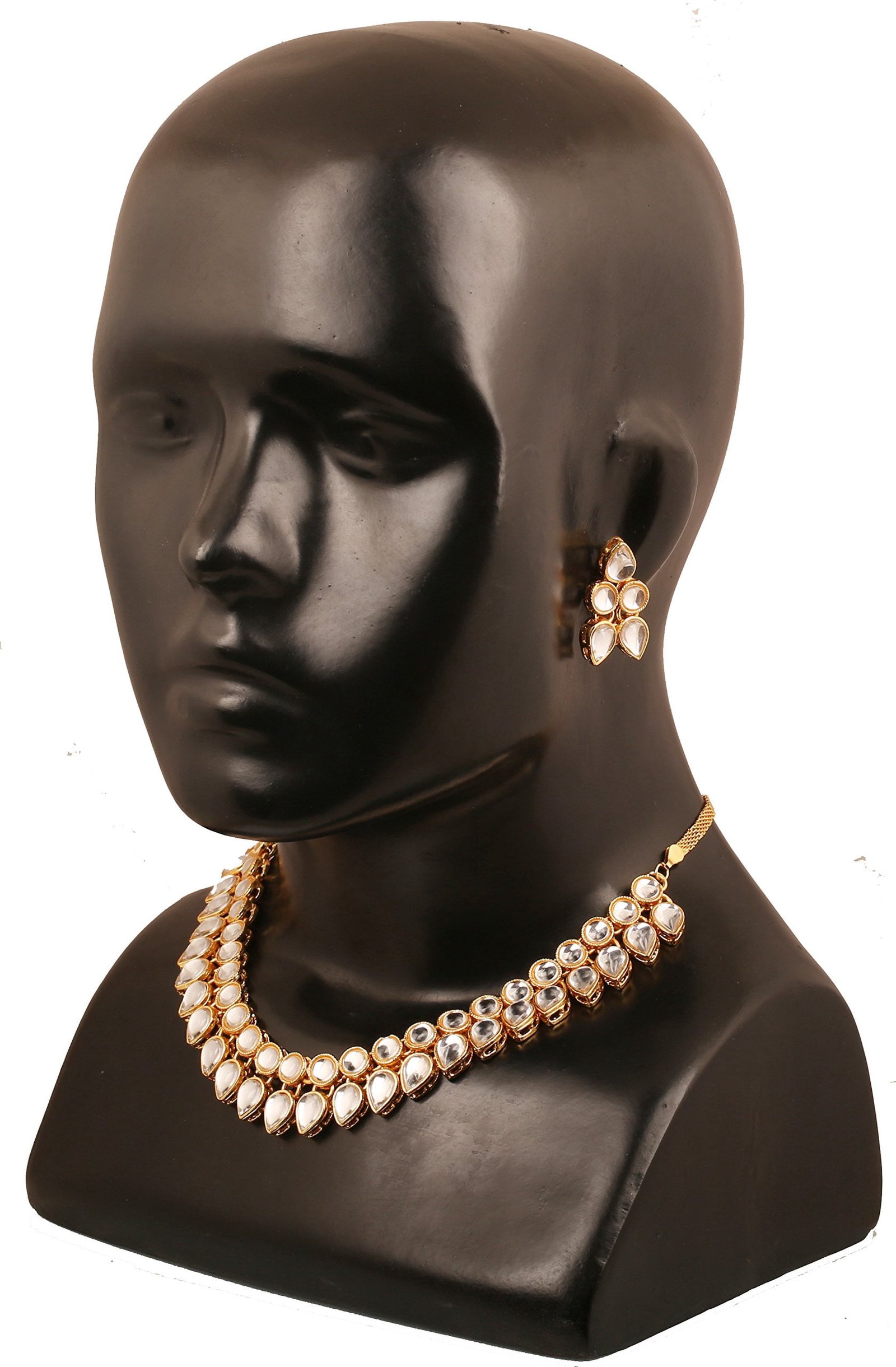 Alloy metal, Handcrafted Masterly Created In Mughal Era Inspired Kundan Polki Look Style Statement Traditional Necklace Set In Gold Tone. Created, Keeping In Mind The Rich Traditions And Rituals. Compliments Your Personal Appearance, Saree, Costumes And Shalwar Qameez, So Gracefully And Perfectly Well That Ensures You To Steal The Party And Get Appreciated For Your Fashion Sense, Leaving Others Keep Gasping And Coveting!!!