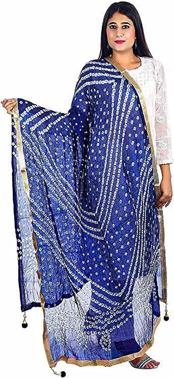 Elegant 100% Silk Dupatta with Exquisite Gota Work and Latkan Add timeless elegance to your wardrobe with this 100% Silk Dupatta, beautifully handcrafted in India. Made with the finest attention to detail, this luxurious accessory showcases intricate Gota work and delicate Latkan detailing, perfect for traditional and festive occasions. Key Features: Premium Quality Fabric: Crafted from Art Silk that blends elegance with durability. Dimensions: Generously sized at 2.25 meters (Length: 88 inches, Width: 42 inches), offering versatile styling options. Exquisite Workmanship: Heavy Dupatta with stunning Gota work and tassel accents for an opulent finish. Vibrant Colors: Available in vibrant hues as shown in the picture, enhancing your ethnic ensembles. Care Instructions: Easy to maintain with Handwash, Machine Wash, or Dry Clean options. Why Choose This Dupatta? Designed with perfection and delicate care, this Dupatta embodies the essence of luxury and craftsmanship. Whether paired with a traditional lehenga, anarkali, or kurta, it elevates your attire effortlessly. Made in India This beautiful piece is a testament to the rich heritage of Indian artistry. Imported for your convenience, it brings a touch of cultural sophistication to your wardrobe. Note: Slight variations in color may occur due to the unique nature of handmade products. Upgrade your ethnic collection with this versatile and stunning Dupatta today!